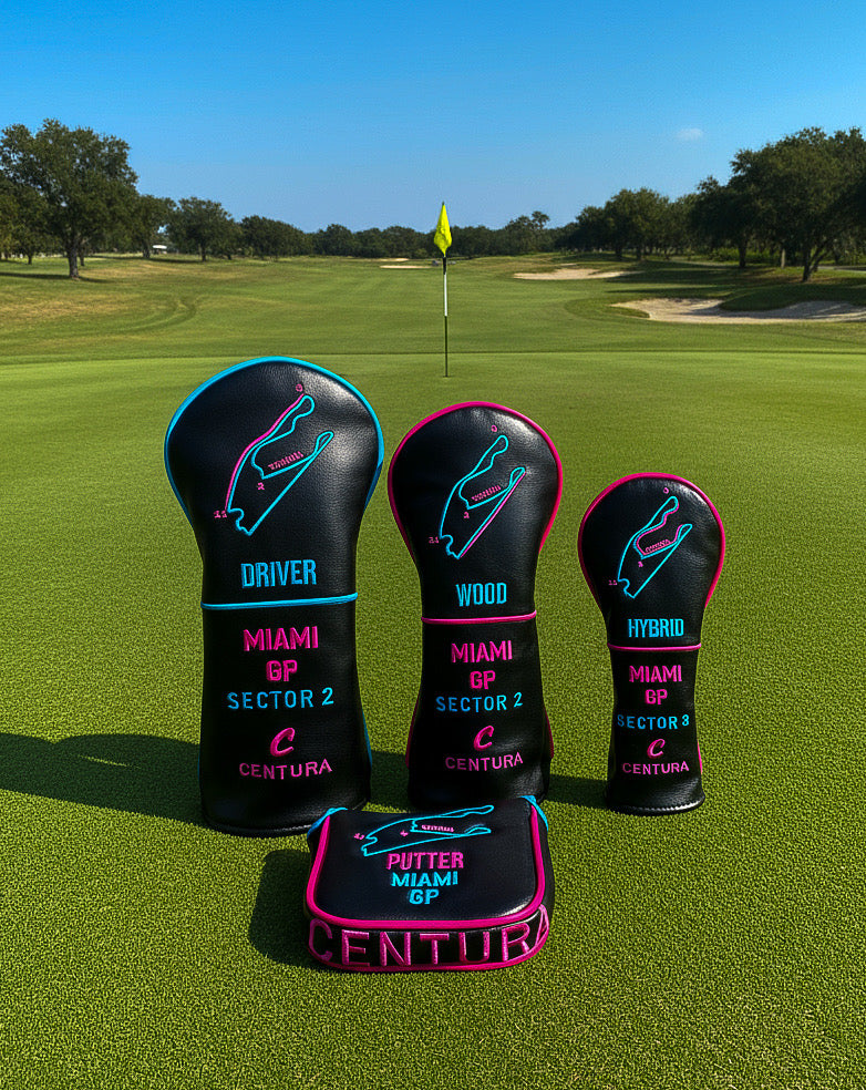 Introducing 305 Circuit Lumière, CENTURA’s inaugural golf head cover drop inspired by the electric atmosphere of the Miami Grand Prix. This limited release captures the essence of race weekend in the 305 — where neon lights trace the skyline, engines echo through the streets, and elegance meets adrenaline.